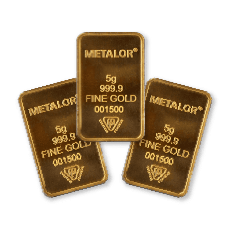 This is a bundle of 3 x brand gold bars, struck in 999.9 fineness 24-carat gold and is minted by Metalor. This bundle offers you a cheaper way to buy three x Metalor 5g Gold Bars.