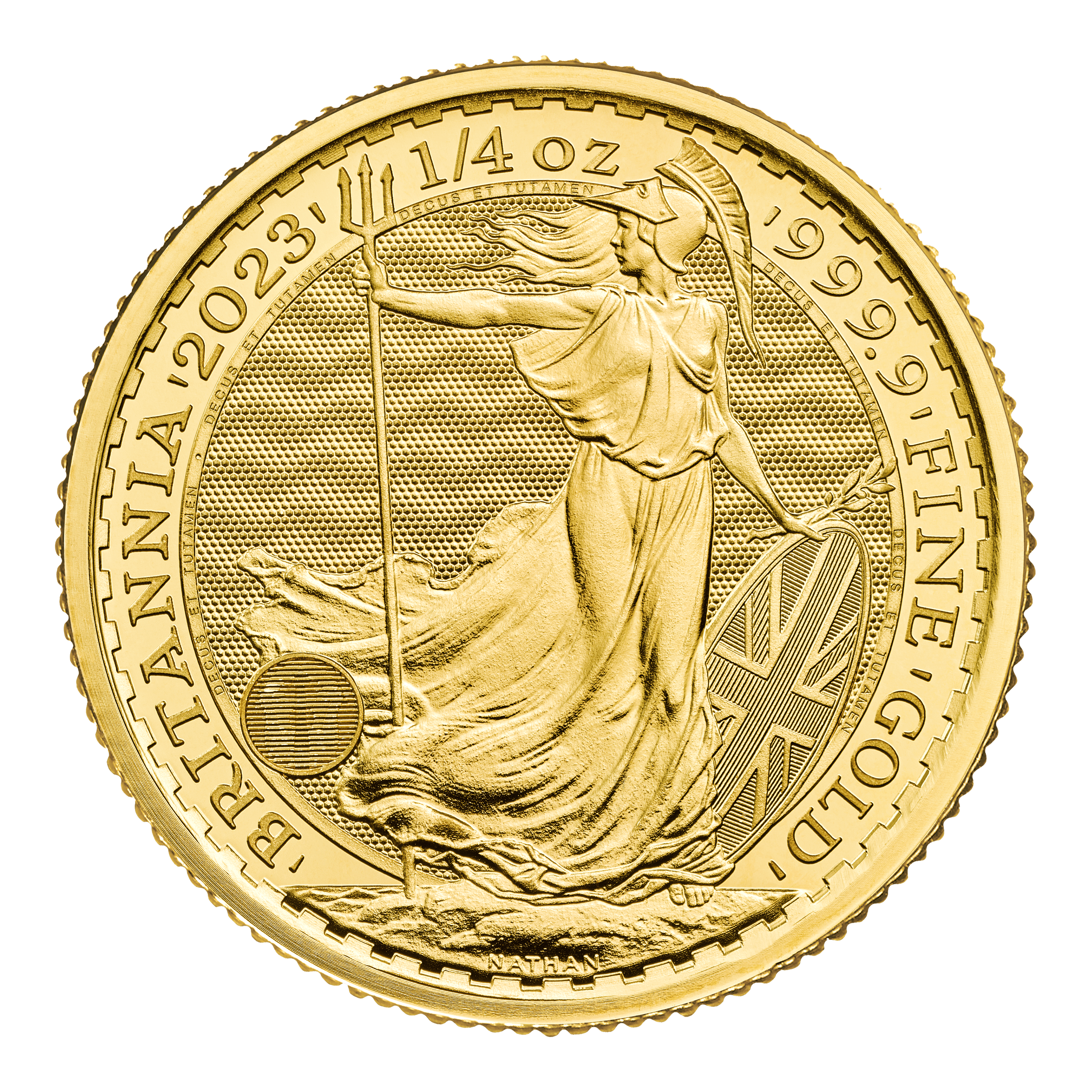 The 2023 Quarter Britannia is a fractional coin from The Royal Mint, based on the larger 1oz Gold Britannia.