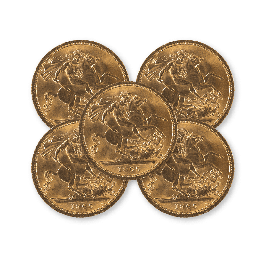 You will receive 5 x gold half Sovereign coins with monarch heads ranging from Queen Victoria half Sovereigns to Queen Elizabeth Half Sovereigns. This is a cheaper way of buying five x Gold Half Sovereigns.