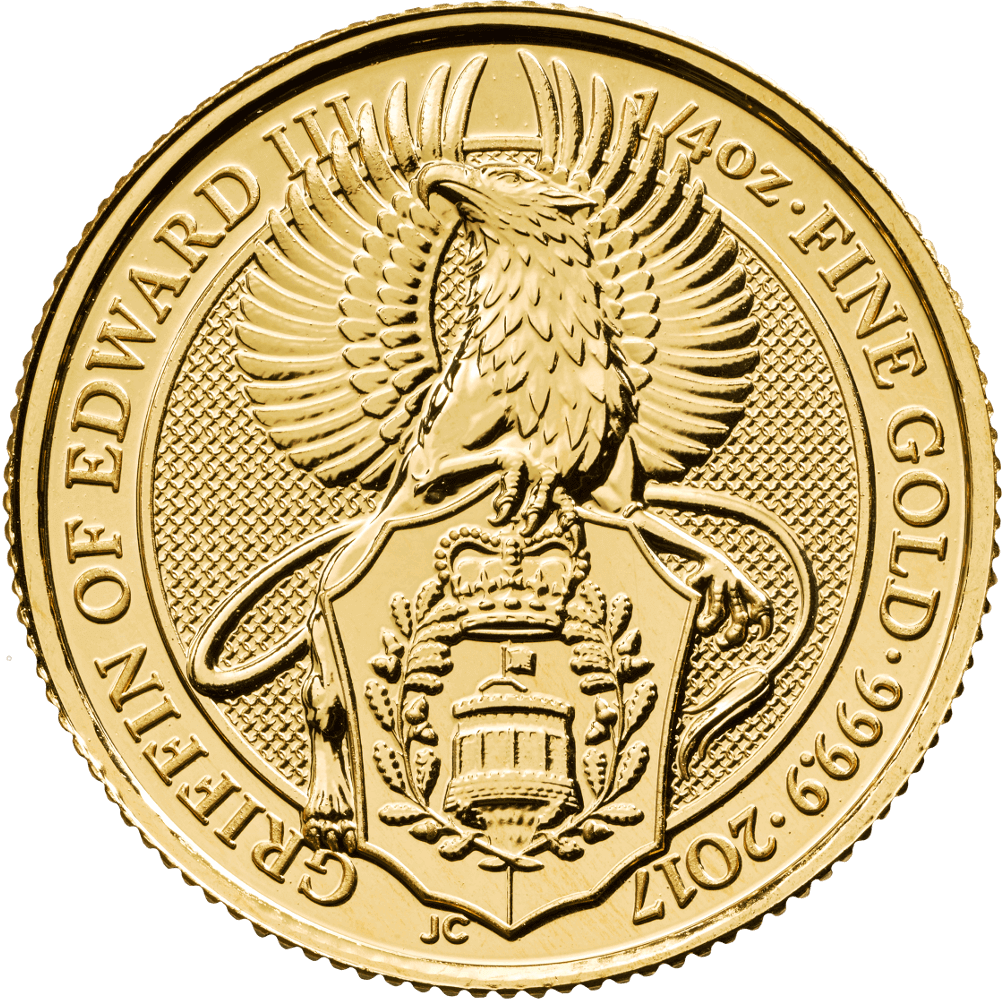 The Queen’s Beast series of coins have proved extremely popular with both investors and coin collectors, and it’s not difficult to see why. At a quarter of an ounce, the coin is more accessible than its larger 1oz brother. In fact for those who’ve bought Sovereigns for years, the quarter ounce Gold Griffin offers a comparable alternative. Its modest size means that more coins can be bought and the buyer therefore has more flexibility to sell small parts of their holding in the future.