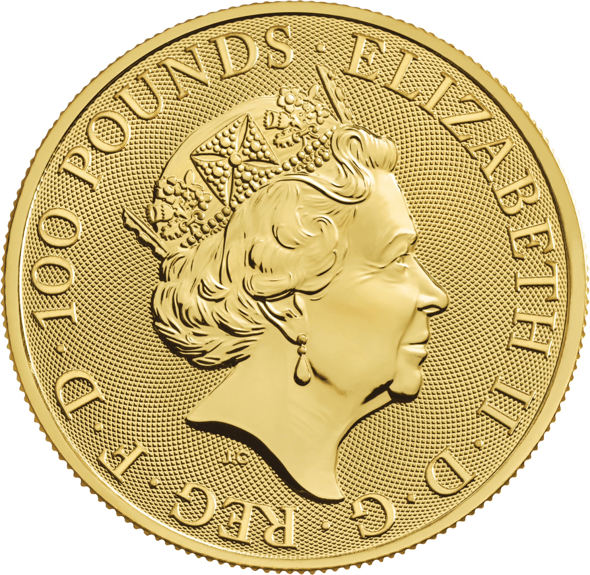 The Queens Beast series celebrates the ten heraldic beasts which were present in statue form at Queens Elizabeth’s 1953 Coronation at Westminster Abbey. The ten beasts represent the queen’s illustrious line of ancestry with each creature associated with various Royal Houses and monarchs. The Royal Mint produce these coins in gold, silver and platinum versions, with the silver coming in 2oz and 10oz editions, while the gold is produced in quarter ounce as well as these full 1-ounce versions.