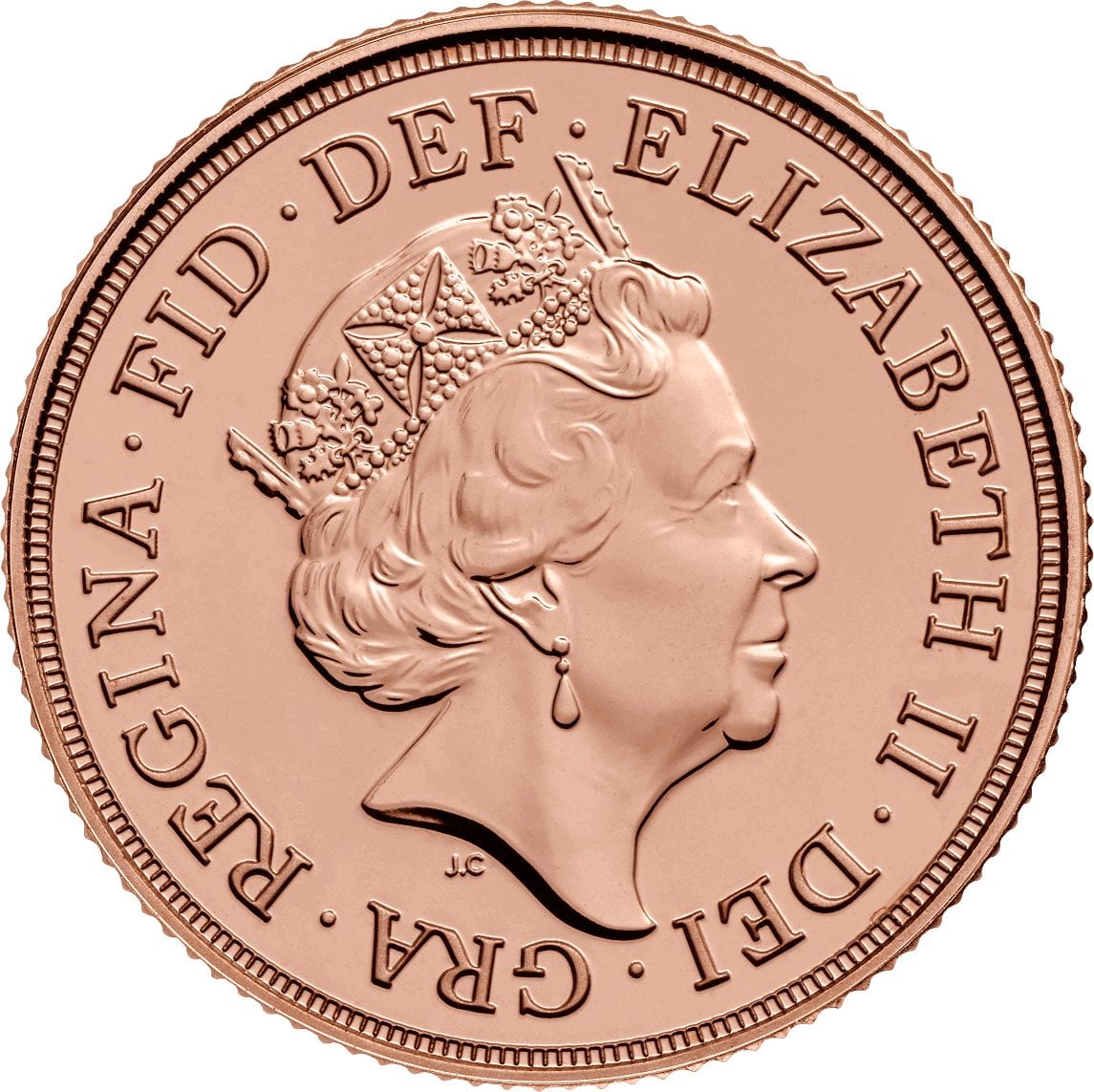 The Latin on the coin reads ‘DEI GRA REGINA FID DEF.’ Once this is expanded it is translated as ‘Dei Gratia Regina’ which means By the Grace of God. Queen. Fid Def is ‘Fidei Defensor’ which means ‘Defender of the Faith’.