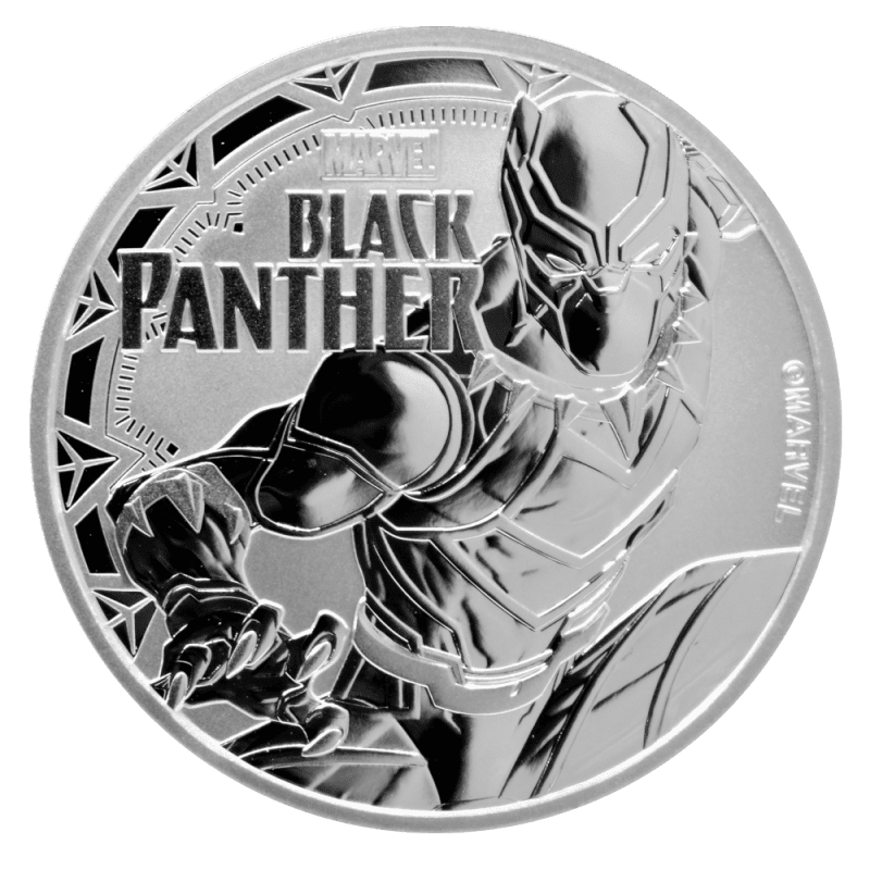 The Marvel Black Panther silver bullion coin, is the 3rd in a series of six and follows the success of the Silver Spiderman and Silver Thor 1oz coins. Each coin is being released to coincide with the related movie release to capitalise on relevance and interest. Despite being minted by the Perth Mint, the coin is actually produced on behalf of the tiny Polynesian island of Tuvalu, adding to the coin’s exotic nature.