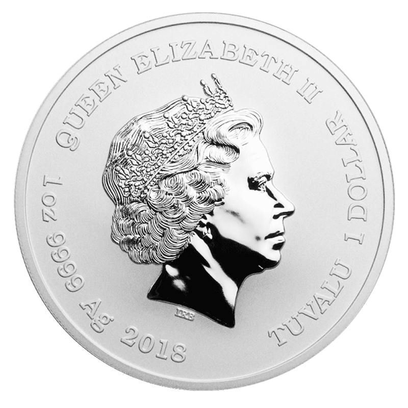 This is a brand new 1oz silver coin produced by world renowned mint Perth Mint of Australia. Beautifully made to a purity of 999.9, this 1oz silver coin is produced on behalf of tiny Polynesian island Tuvalu with a face value of 1 Tavalu Dollar. Coins come in plastic capsules individually, in foil rolls of 20, or boxes of 500 (containing 5 rolls).