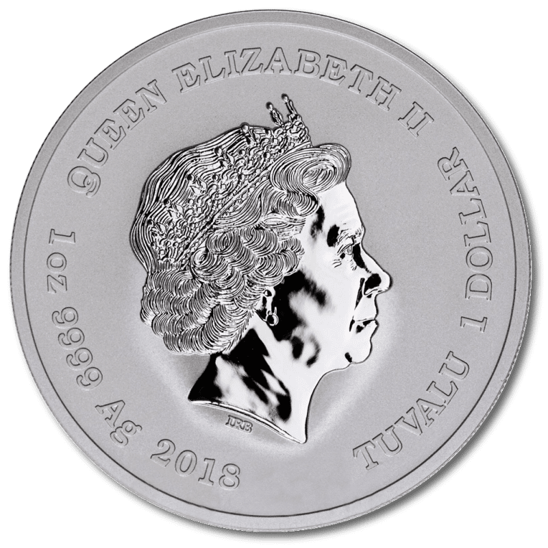 The obverse of the Thor silver coin features the 4th portrait of Queen Elizabeth II, created by Ian Rank-Broadley. UK coins feature the older looking 5th portrait by designer Jody Clark, so these coins represent a chance to enjoy some nostalgic imagery. The portrait stands out from the background’s matt finish with its highly polished look. The coin front is completed with writing around the edge, confirming the monarch, country of issue, face value of 1 Tuvalu Dollar, metal, weight, purity and finally year of issue.