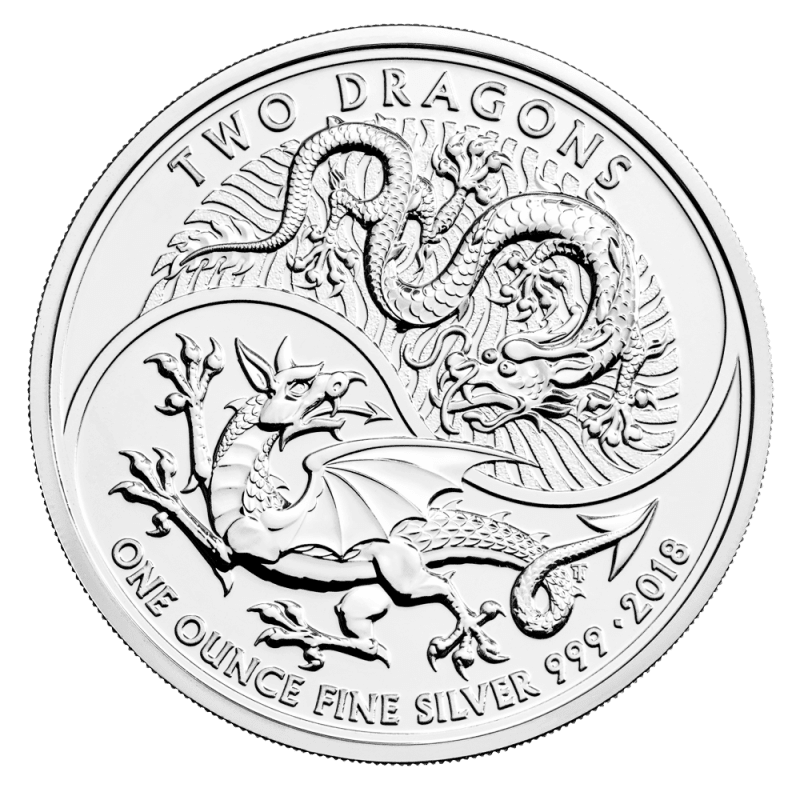 The edge of the reverse contains the wording ‘TWO DRAGONS’ on the top, with the weight, metal purity and year of issue on the bottom.