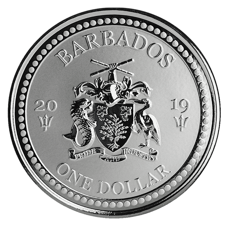 This is a 1oz silver bullion coin produced by Scottsdale Mint as a legal currency coin of Barbados. With a face value of 1 Bajan Dollar, this limited issue silver coin (10,000 pieces) is a departure for Scottsdale from their renowned striking silver bars.