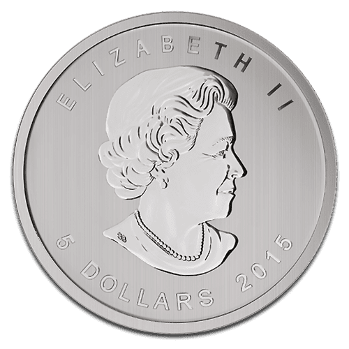 The obverse of the silver coin features the now familiar Canadian portrait of Queen Elizabeth II facing right, as part of the British Commonwealth. Below the portrait is confirmation of the face value and year of issue (2015).