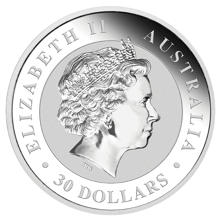 This huge 1KG Pure Silver Kookaburra coin issued from the Perth Mint depicts the native Kingfisher bird. The sheer size of the coin allows for impressive detail of the 2018 Kookaburra image on the reverse, and Queen Elizabeth II’s 5th portrait on the obverse. The coin has a face value of $AUD30.