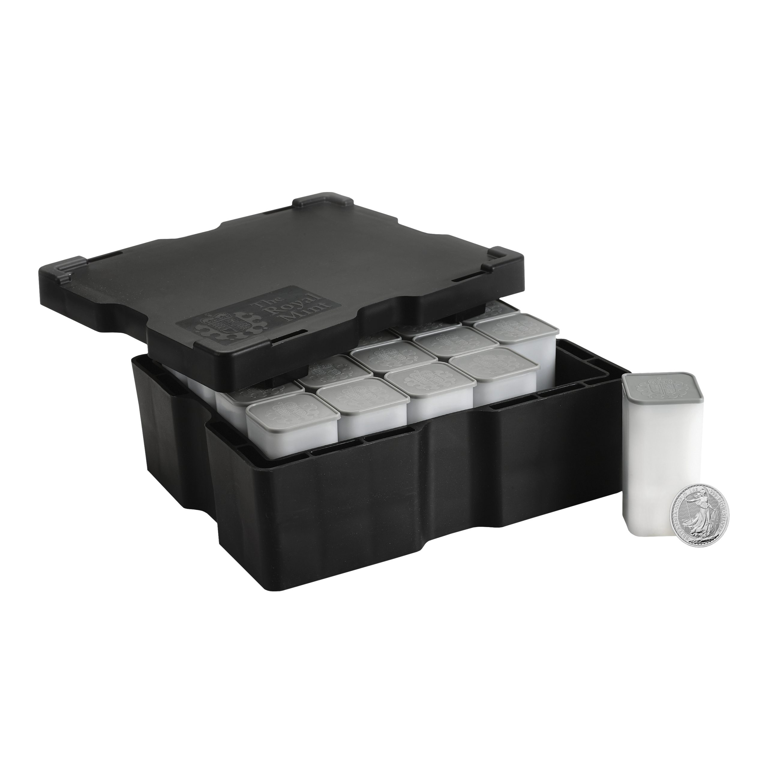 This is a brand-new Royal Mint box containing 500 x 1oz Silver 2025 Britannia coins. Each box contains 20 official Royal Mint tubes of 25 x 1oz silver coins. This is the ideal choice for serious silver investors, seeking value, liquidity, tax efficiency and easy stacking for storage.