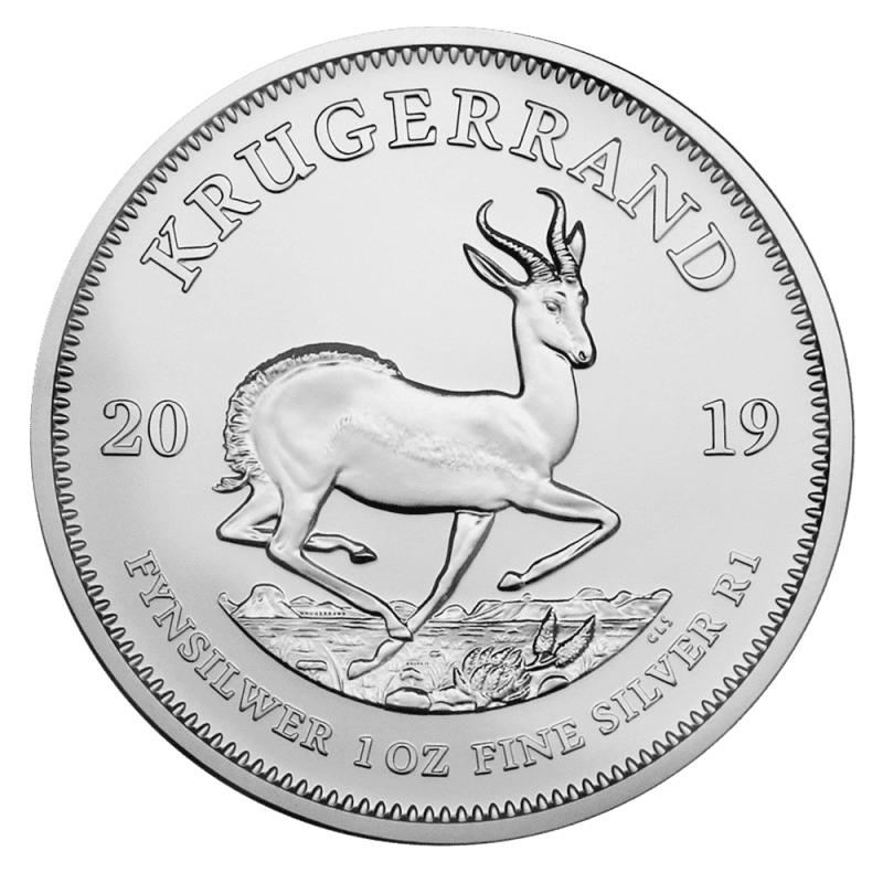 The design of the silver Krugerrand will be familiar to anyone interested in gold coins as it’s an exact replica of the famous gold Krugerrand. The front of the coin features the untouched portrait of Paul Kruger, the South African president at the time of the original Krugerrands launch in 1967. Around the portrait are the words ‘Suid-Afrika’ and the English version ‘South Africa’. The reverse of the coin presents the similarly familiar South African Springbok, their native antelope. An ornate edging surrounds the reverse, with written information within that boundary. The wording includes the coin name ‘Krugerrand’, the year of issue, the coin weight and metal.