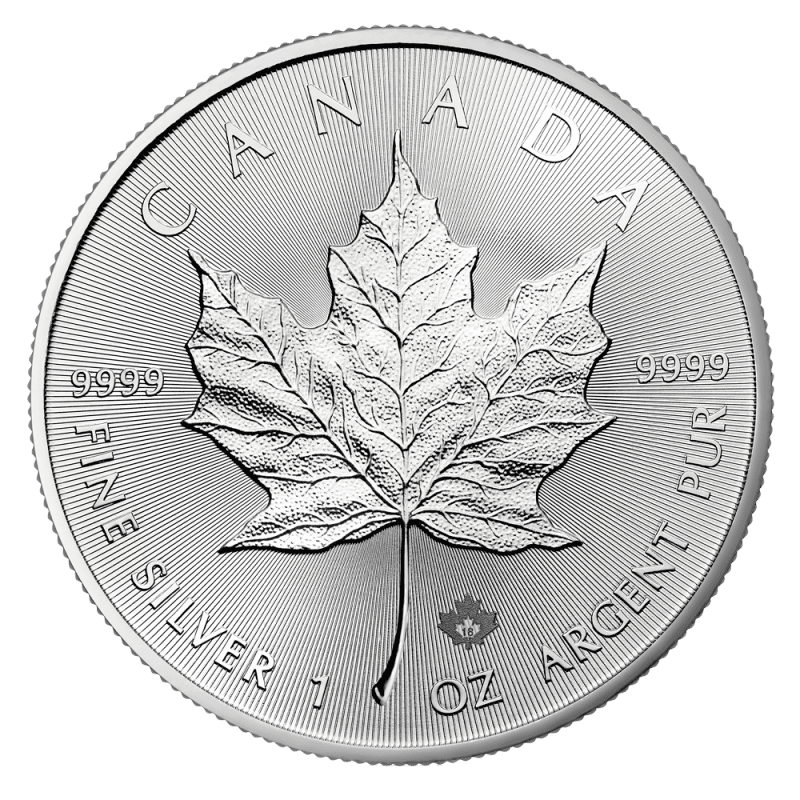 The Maple Leaf has long been one of the most recognised and respected bullion coins of the world. The Royal Canadian Mint were pioneers of producing the highest fineness coins with the gold Maple Leaf being one of the first to boast ‘four nines’ purity. The silver version contains exactly 1oz of pure silver and comes individually in sachets or in tunes for orders in multiples of 25, or boxes of 500. The diameter of each coin is 38mm with a depth of 3.15mm. The coin benefits from a face value of 5 Canadian Dollars.
