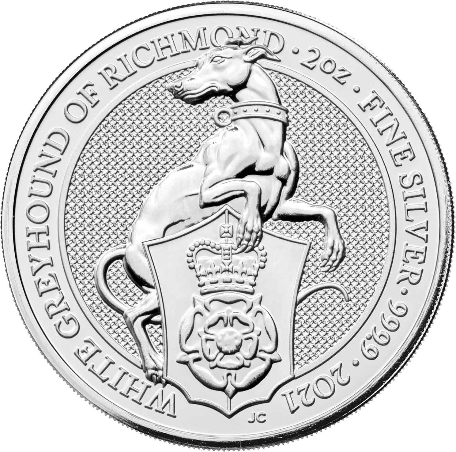 2oz Queen’s Beasts White Greyhound of Richmond Silver Coin (2021)
