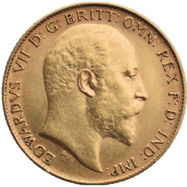 These popular coins are notable for being the first gold sovereign of the 20th century and the last to be entirely minted at the London Mint. It features engraver George William De Saulles' 'bare head' portrait of King Edward VII on the obverse.