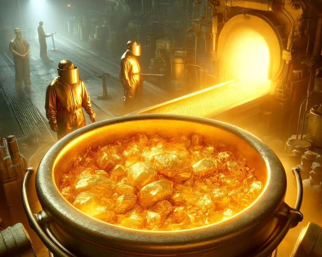 The first step in refining gold is melting it down to a liquid state. This is typically done in a furnace at high temperatures, where the gold is heated until it reaches its melting point of 1,064 degrees Celsius (1,948 degrees Fahrenheit).