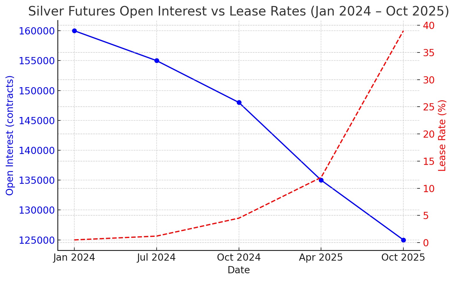Yet in October 2025, those same rates spiked to nearly 40%, reflecting extreme scarcity of deliverable silver.