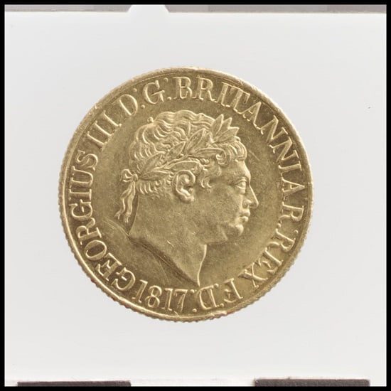 The gold Sovereign was reintroduced into British coinage in the early 19th century, after a long hiatus since 1603. When the re-introduced Sovereigns were initially minted in 1817, George III was the reigning monarch.